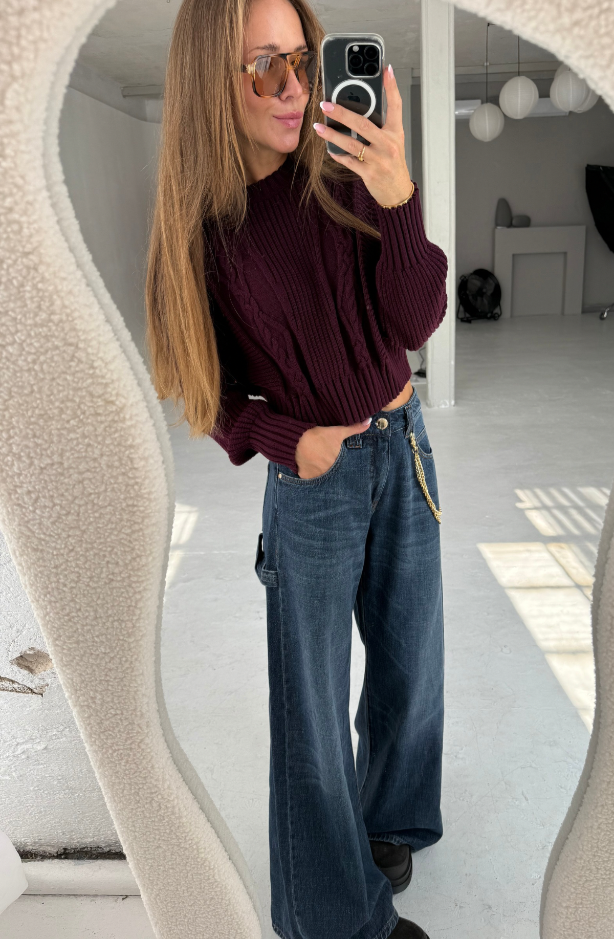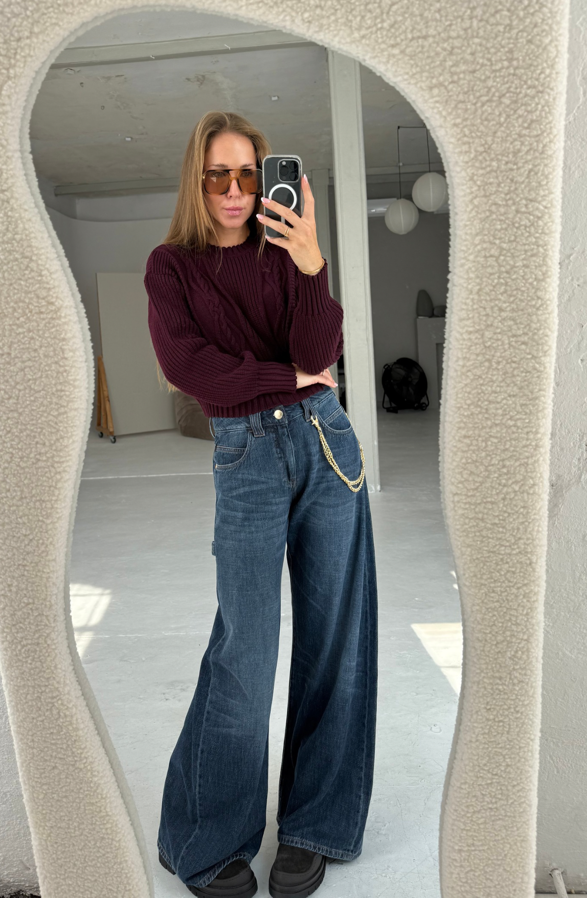 Łańcuch w zestawie ze spodniami.
