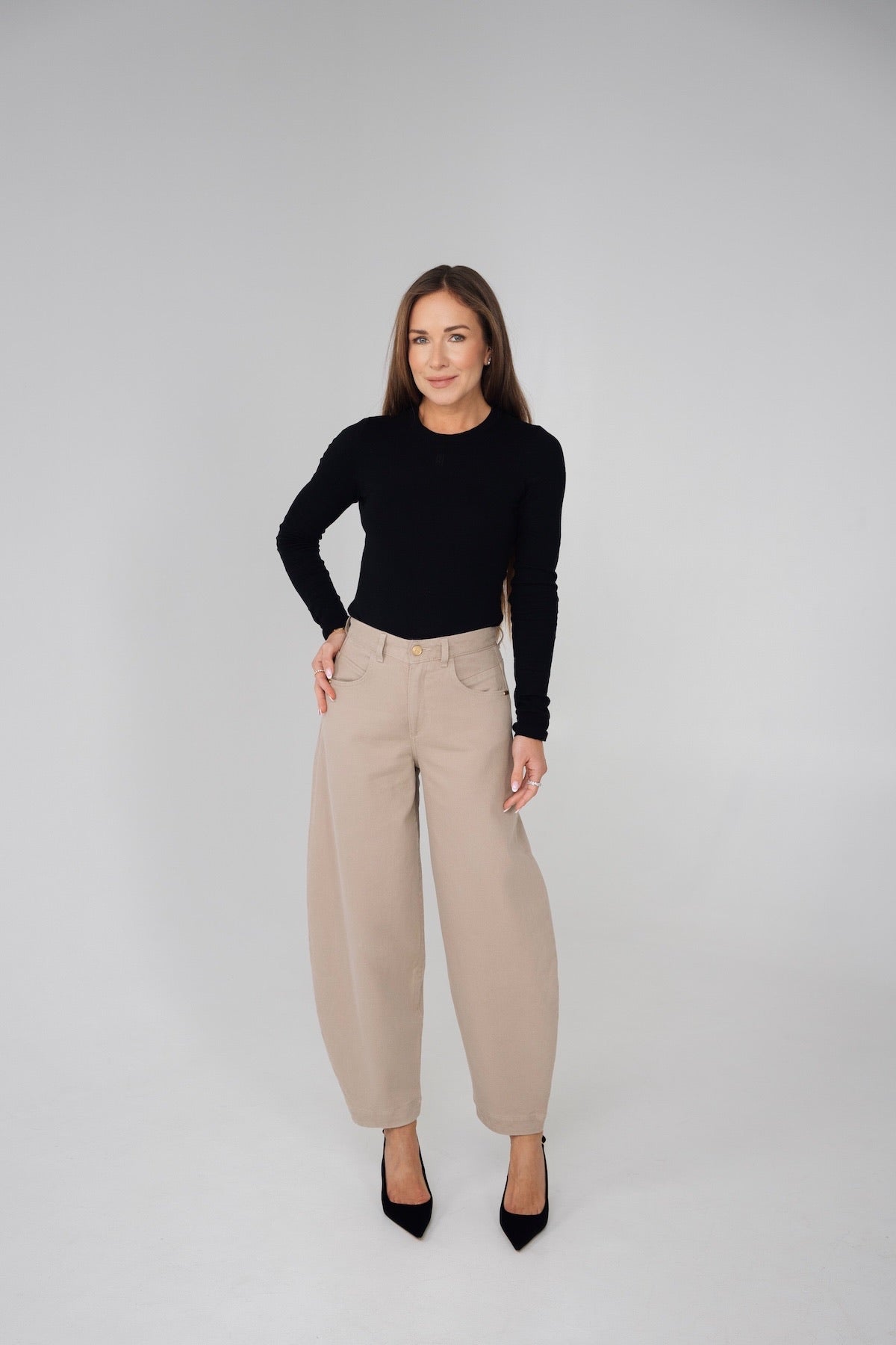 Szukasz idealnych jeansów typu BARREL? Zobacz nasze Jenny w przepięknym odcieniu beżu. Wybraliśmy denim, który w składzie ma lyocell, jest nieziemsko miękki i lekki. Pięknie układają się na sylwetce poprzez dopracowaną konstrukcję nogawek. Możesz je nosić na co dzień do sportowych butów lub na wyjście do szpilek. Rozmiar wypada standardowo. Ela ma 170 cm wzrostu i ma na sobie rozmiar XS. MODELU JENNY ZE WZGLĘDU NA NIESTANDARDOWE WYKOŃCZENIE DOŁU LAMOWANIEM NIE MA MOŻLIWOŚCI SKRÓCENIA.