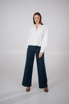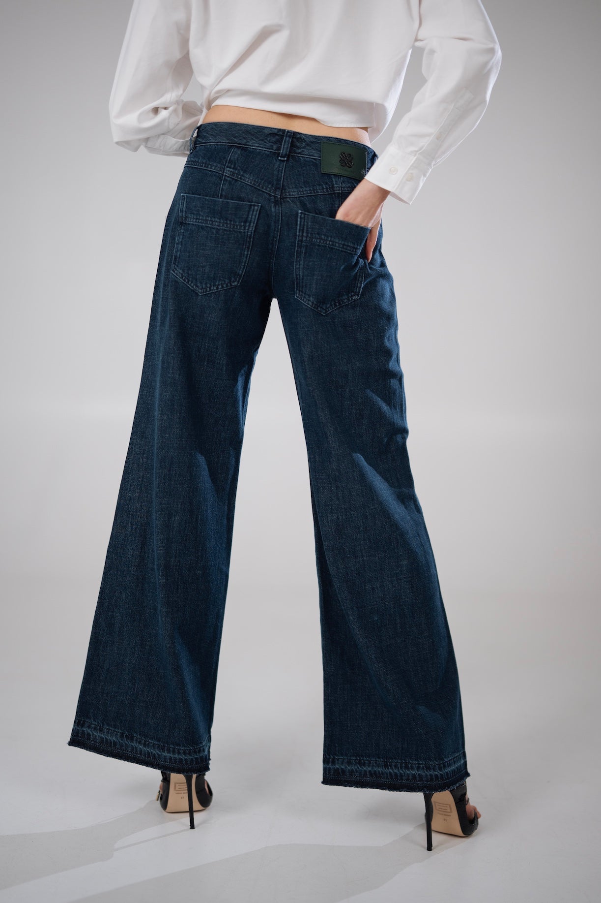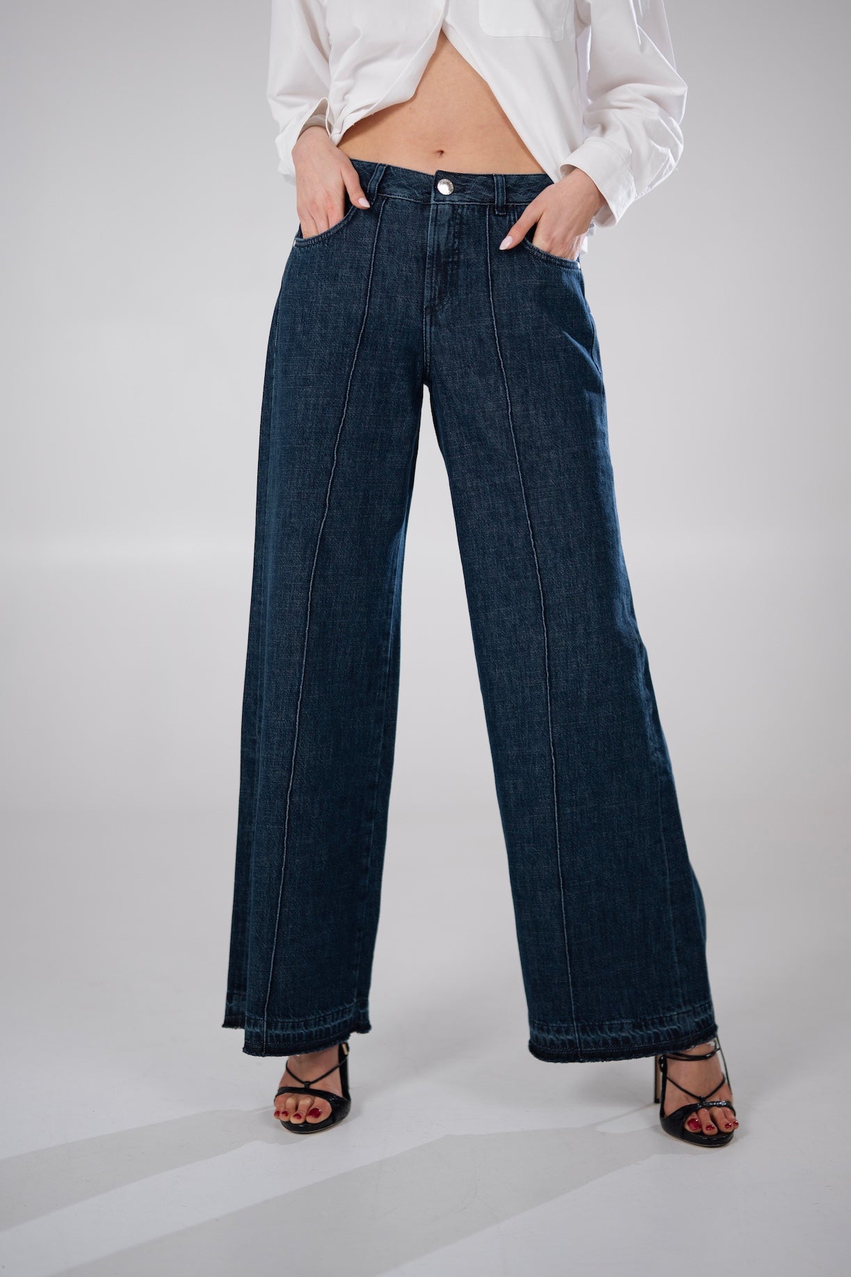Eleganckie jeansy? Zdecydowanie tak! Nasza RIVA w kolorze ciemnogranatowym sprawdzi się na co dzień, jak i do biura. Są miękkie i lejące się. Wykonane ze 100% bawełnianego lekkiego jak piórko denimu. Jest to ciemnogranatowy odpowiednik czarnych, które od razu stały się bestsellerem. Mają na przodzie nogawek przeszycia na kant, które wysmuklają sylwetkę. Tylne kieszenie są ułożone tak, aby podnieść i optycznie wyrzeźbić pośladki. Dół nogawek zakończony nieregularnym spraniem, które nadaje spodniom charakteru i sprawia, że nogawki lekko opadają na buty. Rozmiar wypada standardowo. Modelka ma 170cm wzrostu i ma na sobie rozmiar XS. Pamiętaj, że jeśli spodnie będą za długie skrócenie u nas jest zawsze darmowe! Płacisz jedynie za przesyłkę! W przypadku tego modelu skrócenie z racji tego, że są one zakończone bez podwijania polega na obcięciu spodni na równo.
